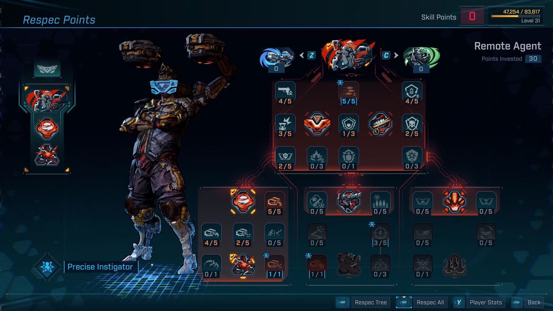 Использование машины респека требует оплаты, размер которой зависит от уровня персонажа. После входа в меню переназначения очков игрок получает доступ ко всем Боевым навыкам (Action Skills) и деревьям способностей персонажа.